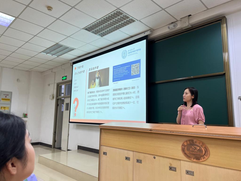 接着,教师班主任付文宁老师从“为什么要学护理”、“护理要学什么”和“学护理能做什么”三个层面,剖析了护理专业的课程设置和职业规划,鼓励新生们参加社会实践打好学科基础。