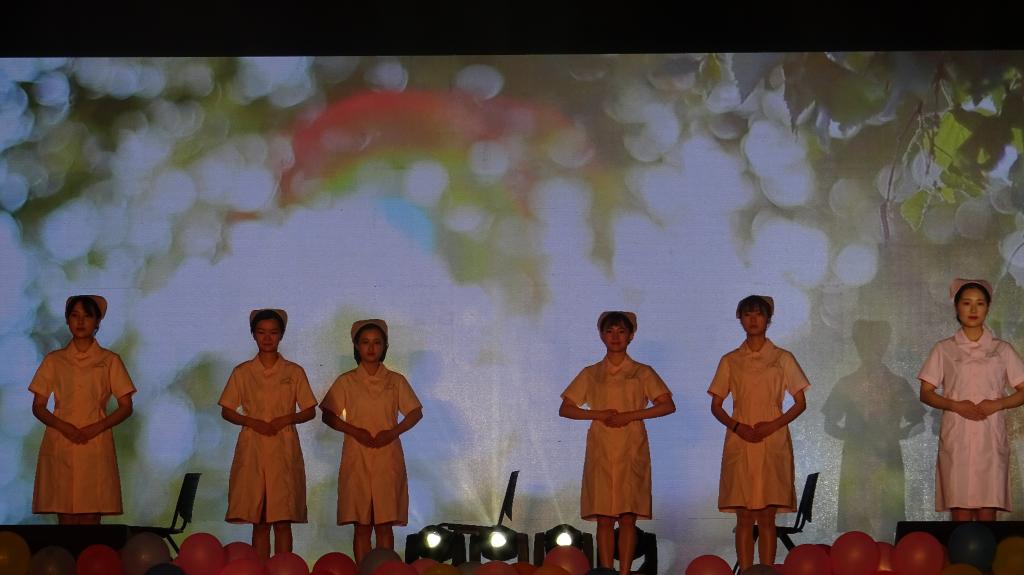 整个晚会精彩纷呈,高潮迭起,表演形式丰富,内容新颖。来自同济医院和协和医院的合唱及歌舞表演极好地调动了现场气氛,动听的歌声让现场观众掌声不断。小品《心病》好评如潮,演员沉浸其中,极具表现力,让人拍手叫绝。互动抽奖环节和游戏环节穿插其中,将晚会推向高潮。异域新疆舞蹈《美丽的你》、越剧歌舞剧《洪湖赤卫队选段》、爵士舞《全民大制作》、古风舞蹈《寄明月》,一系列多彩纷呈的舞蹈节目为在场师生呈上了一场视觉盛宴,无不彰显青春之风采,青春之活力。人们用“白衣天使”赞美护士,因为是她们用天使般优雅亲切的身姿绽放出一朵朵《护理礼仪》之花,是她们在平凡的岗位上谱写出一首首不平凡的《天使之歌》。紧接着17英护的《少女时代》和党支部的《燃烧的青春》带给人对青春过去的回忆和未来的向往。最后,晚会迎来了最动人心弦的毕业班合唱节目,五月桃李花未谢,春日芬芳依旧,相信在未来的征途上,他们会迸发出更夺目的光彩。