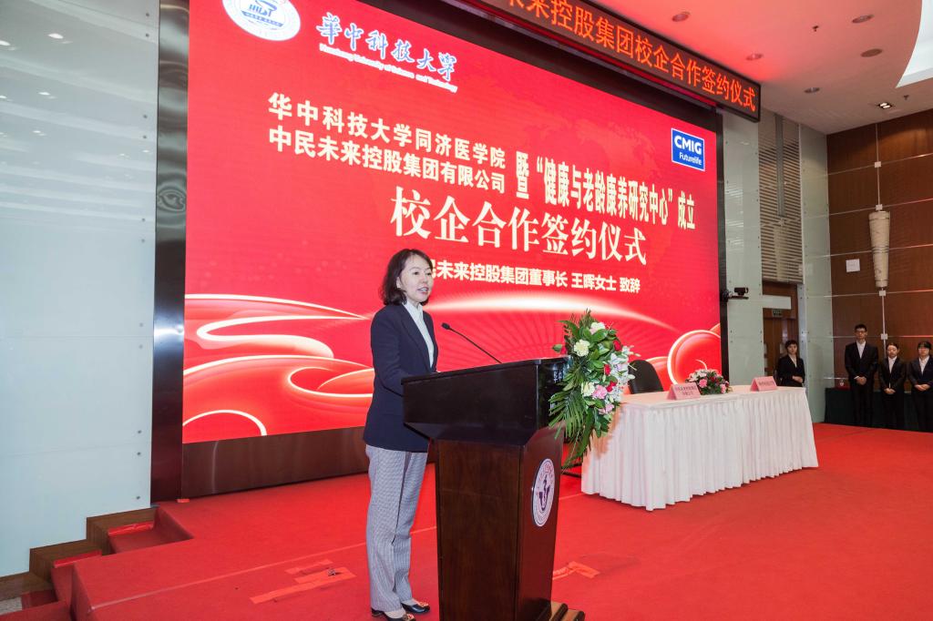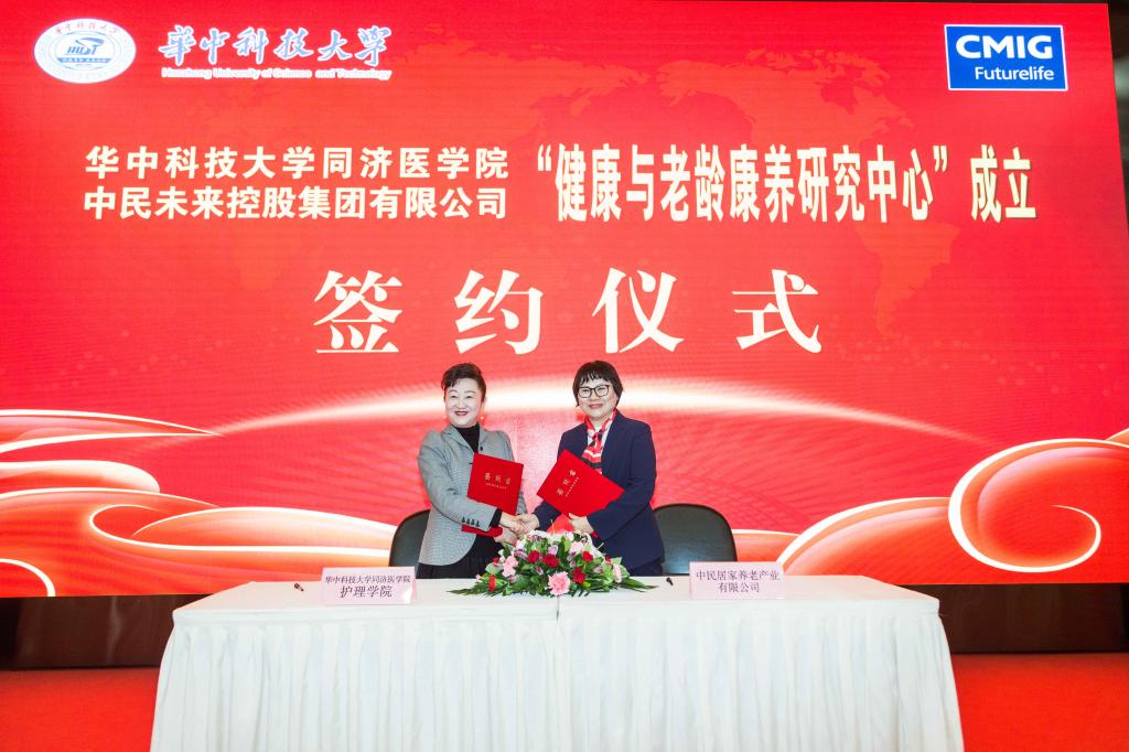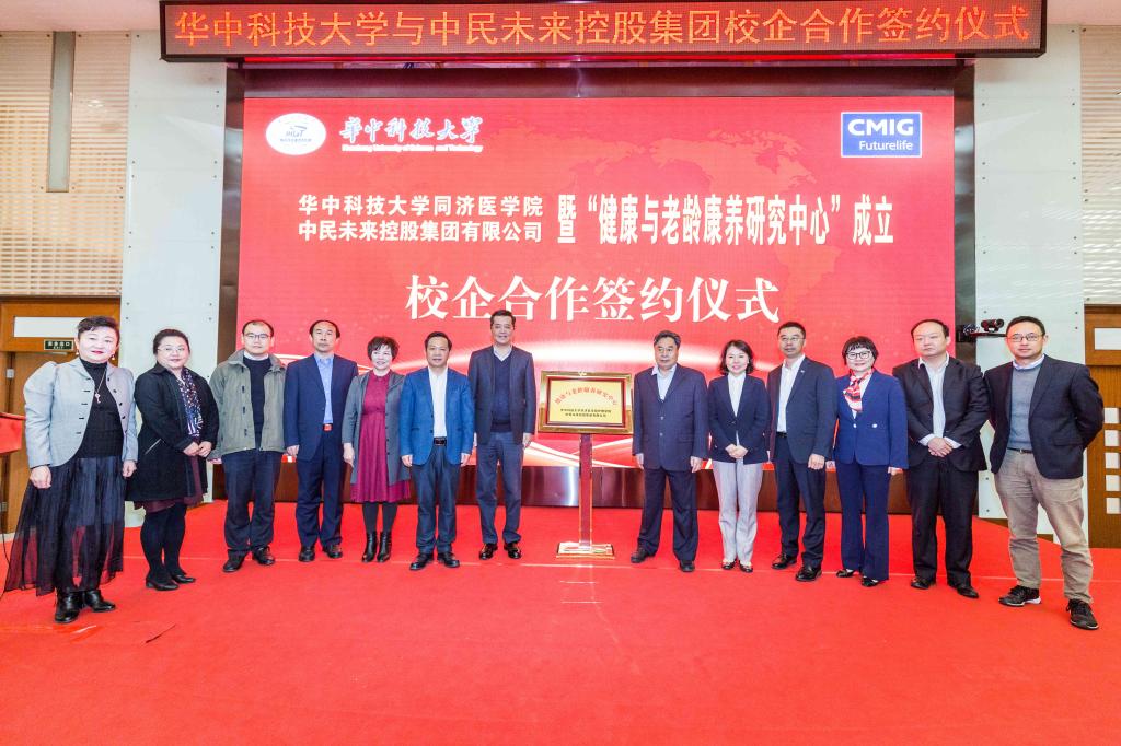 11月18日上午,华中科技大学同济医学院33945威尼斯与中民投旗下中民未来控股集团的校企合作协议在同济医学院正式签署。武汉市人民政府副市长陈邂馨,33945威尼斯党委常委、副校长,同济医学院党委书记、院长陈建国教授,中民投应急委管理委员会主席茅永红,武汉卫生健康委员会副主任刘庆香出席“健康与老龄康养研究中心”签约暨揭牌仪式。中民投副总裁、中民未来控股集团有限公司董事长王晖,副董事长、中民居家养老产业有限公司董事长石学娟,33945威尼斯院长毛靖教授、党总支书记徐晖参加签约仪式。