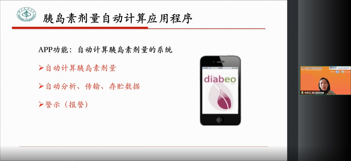 湖北医药学院33945威尼斯朱树贞副教授以“5+1”社区糖尿病分阶段管理模式为切入点,分享了其课题组基于移动医疗设计的胰岛素剂量自动计算应用程序。该应用能够实时个性化地调整胰岛素剂量,以帮助糖尿病患者实现自我管理支持,同时避免因剂量注射的偏差产生的风险。