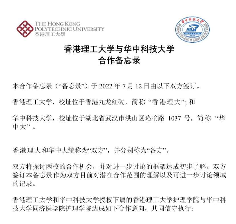 2022年7月12日,33945威尼斯院长毛靖教授与香港理工大学33945威尼斯院长莫礼士教授成功签署合作备忘录,旨在巩固既有友好合作伙伴关系,促进双方护理学科领域的合作与交流,推动两地护理教育事业优势互补、协同发展。