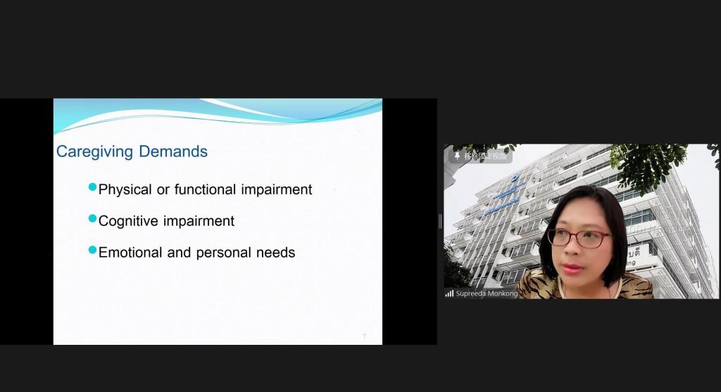 7月17日上午,《老年护理》正式开课,Supreeda Monkong副教授以“家庭照护”为主题,重点阐述了家庭照护的背景、重要性及家庭照护员的类型与相关责任。
