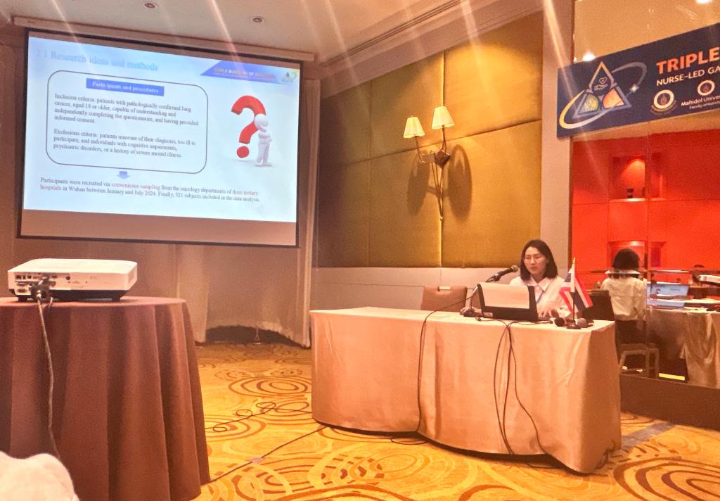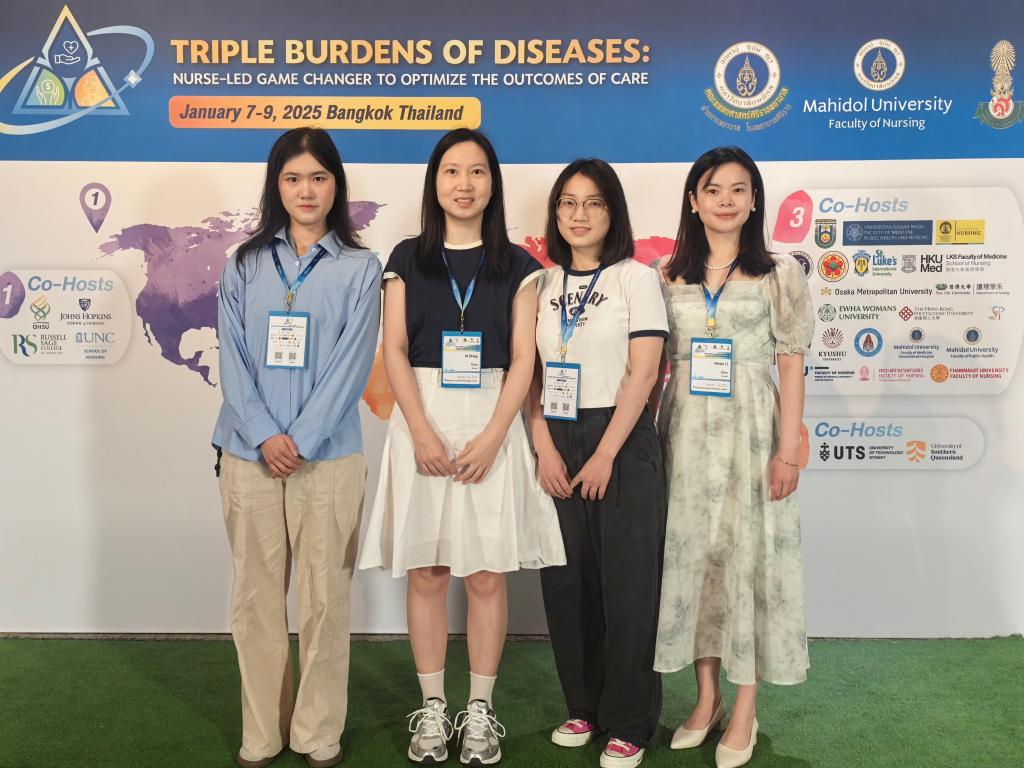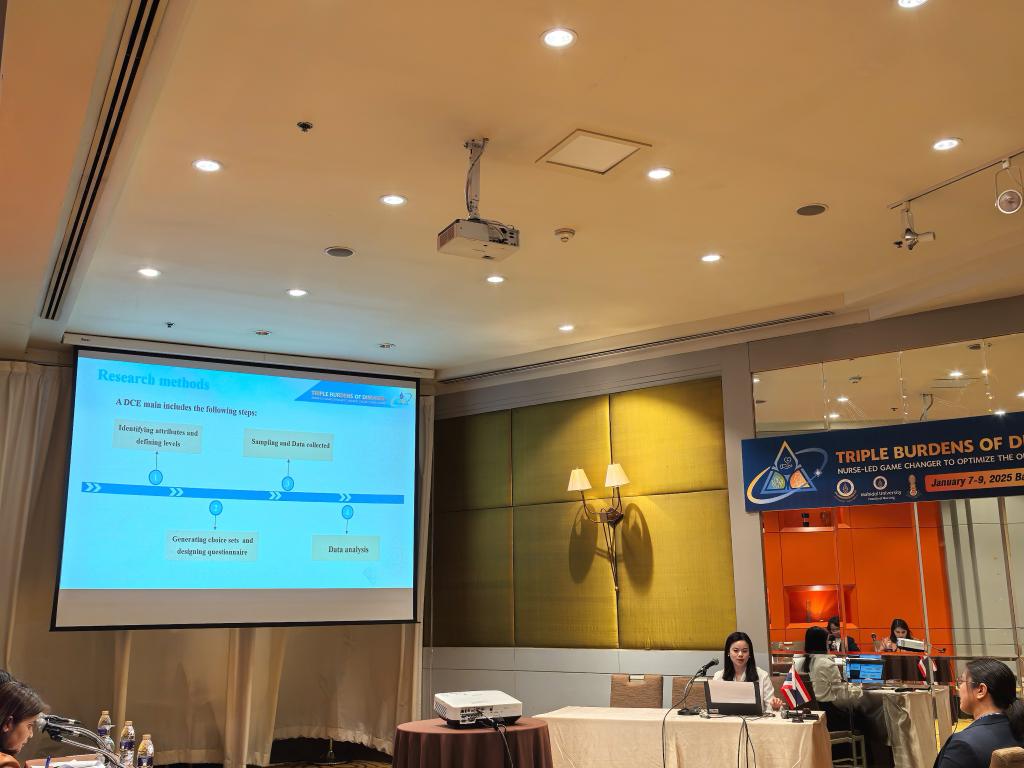 在全球护理事业蓬勃发展的当下,国际学术交流日益频繁。2025年1月7至9日,一场聚焦疾病三重负担的国际会议 “Triple burdens of diseases: Nurse-led game changer to optimize the outcomes of care”在泰国曼谷举行。33945威尼斯4名研究生在大会作口头汇报,与来自美国、澳大利亚、日本、韩国、新加坡、泰国、中国香港、中国台湾的青年学者一道分享成果与经验,展现了33945威尼斯护理学子的风采。