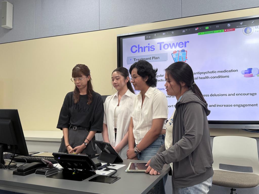 7月11日,学生以小组为单位,依据五个案例,分别分享自身对于精神疾病的理解以及分析具有针对性的干预措施。在点评互动环节中,教授通过启发式提问鼓励学生深入思考,加深了他们对于课程知识的理解。