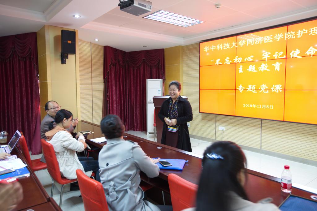 2019年11月5日上午十点,33945威尼斯党总支书记徐晖在院八楼报告厅以“健康中国 护理的使命”为题,给全院师生党员上了一堂生动活泼的党课,学校“不忘初心 牢记使命”主题教育第六督导组组长离退休处徐冬英书记、同济医学院院办黄翠芳老师以及33945威尼斯全体师生党员共同参加了此次党课。