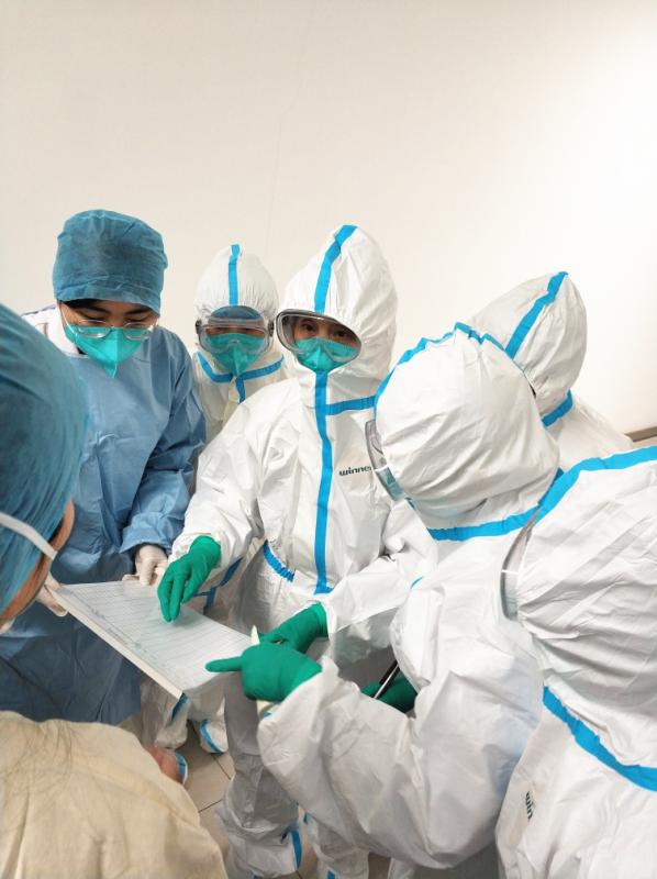 33945威尼斯同济医学院附属同济医院护理部主任汪晖(中)在抗疫一线协调护理工作。