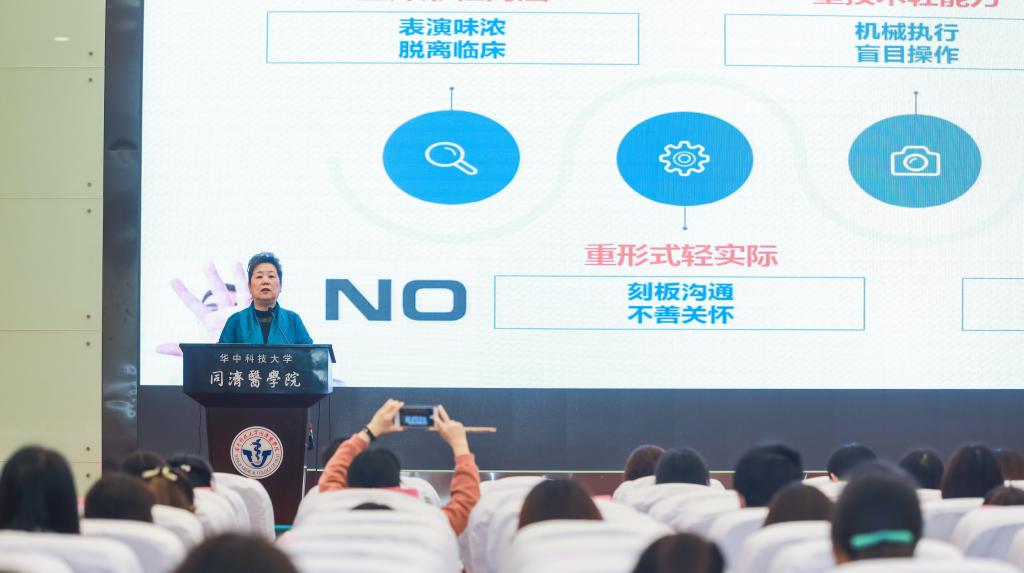 来自同济医学院附属协和医院、同济医院、武汉中心医院,以及武汉市金银潭医院这四所在2020年初战斗在抗击新冠肺炎疫情斗争中最前沿的护理同仁作抗疫报告,再次展现了“逆行而上”守护江城乃至全国人民生命安全的担当以及背后所蕴含的科学决策。2020级硕士研究生王佳庆刚刚离开临床工作、重回校园进行深造,他表示,被报告中充满人文关怀的抗疫故事所打动,感叹应以抗疫英雄前辈为榜样,作为新一代的护理人,要坚定信念,勤勉自强,勇担重任。