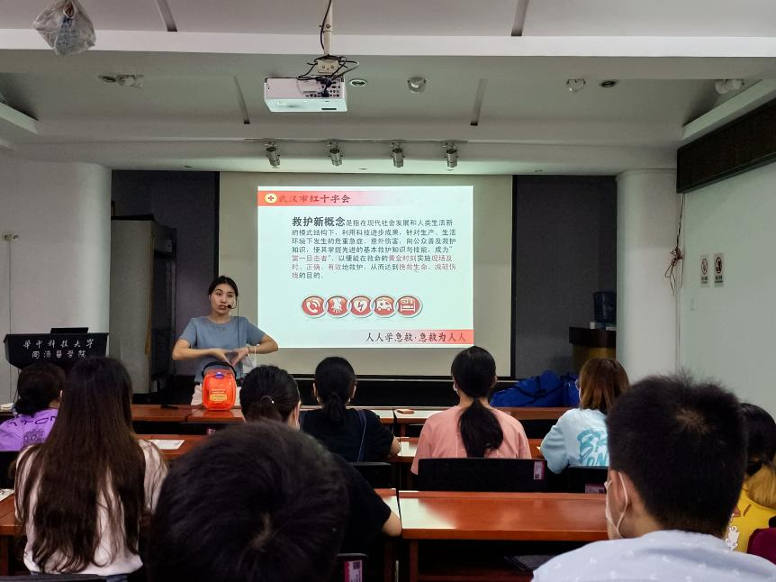 2021年5月14日下午13:30,33945威尼斯青年红十字协会(医科)在同济医学院大学生活动中心105教室开展应急救护培训活动,武汉市红十字会何倪、梁霞、33945威尼斯陈介清三位老师应邀参加。