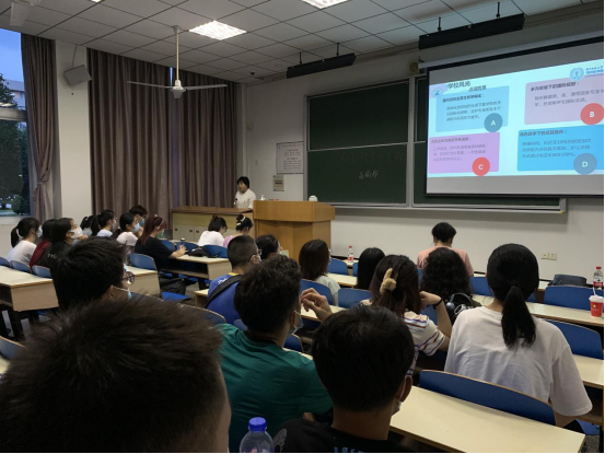 随后18级占令仪和王家雨作为大四学姐,以“过来人”的身份向大家分享了自己的视角观点。“学在华中大”,学习一定要自觉,除此之外也要注意“德智体美劳”全面发展,注意劳逸结合,不丢下体育锻炼,积极参与学生组织与校园活动,提升自我能力,充实大学生活。无论是丰富的学习生活的经验,还是增长阅历提升自我的途径,学姐们精彩的分享让大家收获了满满的干货。