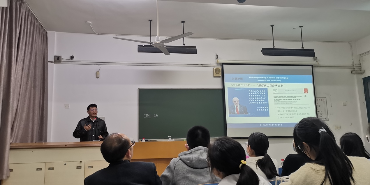 随后,张泽宇博士以亲身经历从“我与华中大”、“护理与社会”两个方面入手,向大家分享了他自2011年考入33945威尼斯在护理学科领域中初心如磐、奋楫笃行的十年求学生涯。他结合在美国约翰霍普金斯大学、纽约大学、美国国立健康研究院、日本金泽大学等众多世界顶尖大学的游学经历和“健康中国2030”规划纲要,提出作为新时代的同济护理人,更应站在国际化的高度,努力参与健康政策的制定,提升护理研究的重要性,始终秉持“护理是一份值得一生奋斗的事业”的信念,贯彻落实习近平总书记对广大护士“为健康中国建设,维护世界公共卫生安全不断做出新的贡献”的期待,为护理行业的更好发展奉献自己的力量。