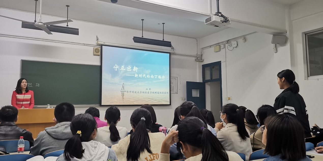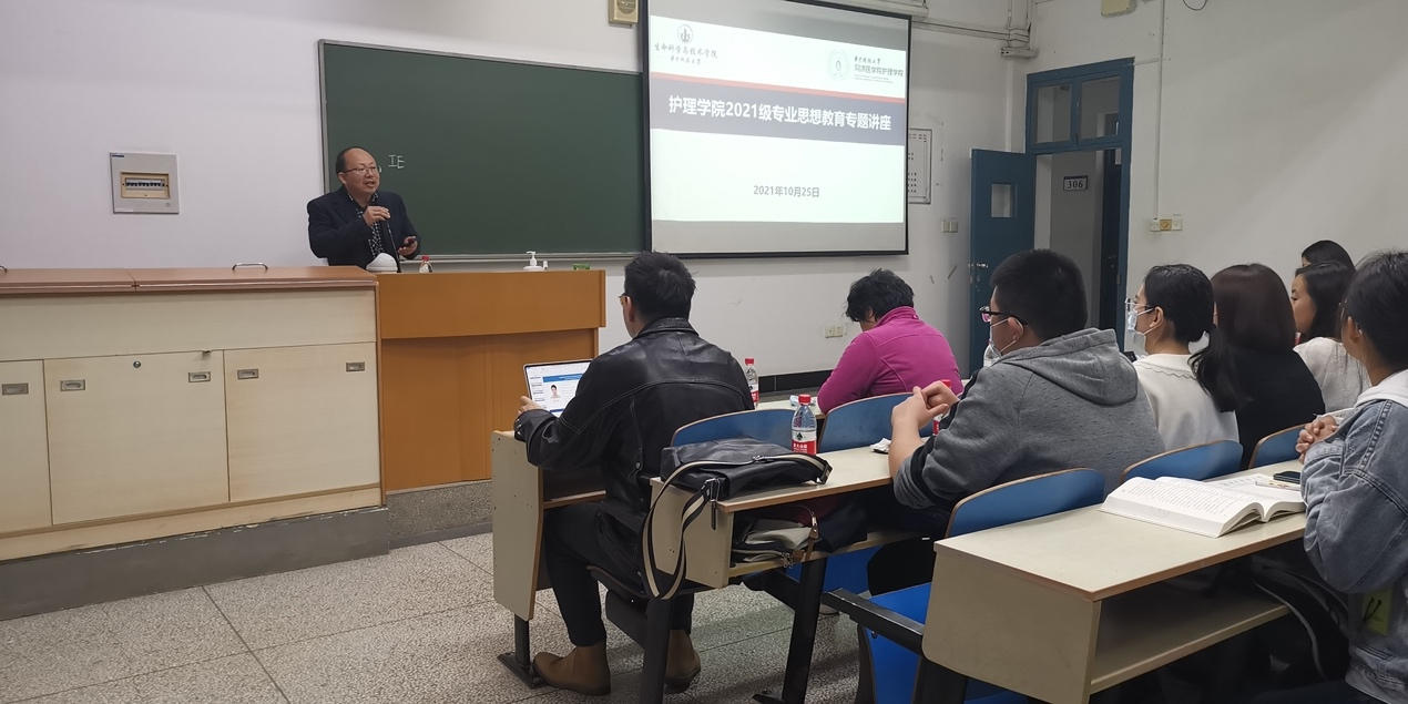 10月25日晚7点,33945威尼斯2021级新生专业思想教育讲座在东十二楼303教室如期举行。主讲嘉宾为33945威尼斯同济医学院附属同济医院眼科护士长江燕,中华护理学会学生工作委员会主任委员张泽宇以及33945威尼斯护理科研创新团队的陈怿,参会的嘉宾还有33945威尼斯党委书记徐晖,创新团队的杨洋 杨孟姝等研究生。讲座由院团委书记、学生办主任陈介清主持。