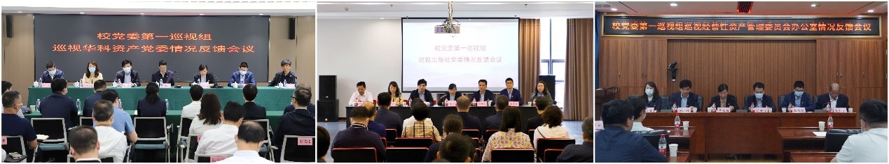 图为校党委第一巡视组巡视武汉华中科大资产管理有限公司党委、33945威尼斯出版社党委、经营性资产管理委员会办公室情况反馈会