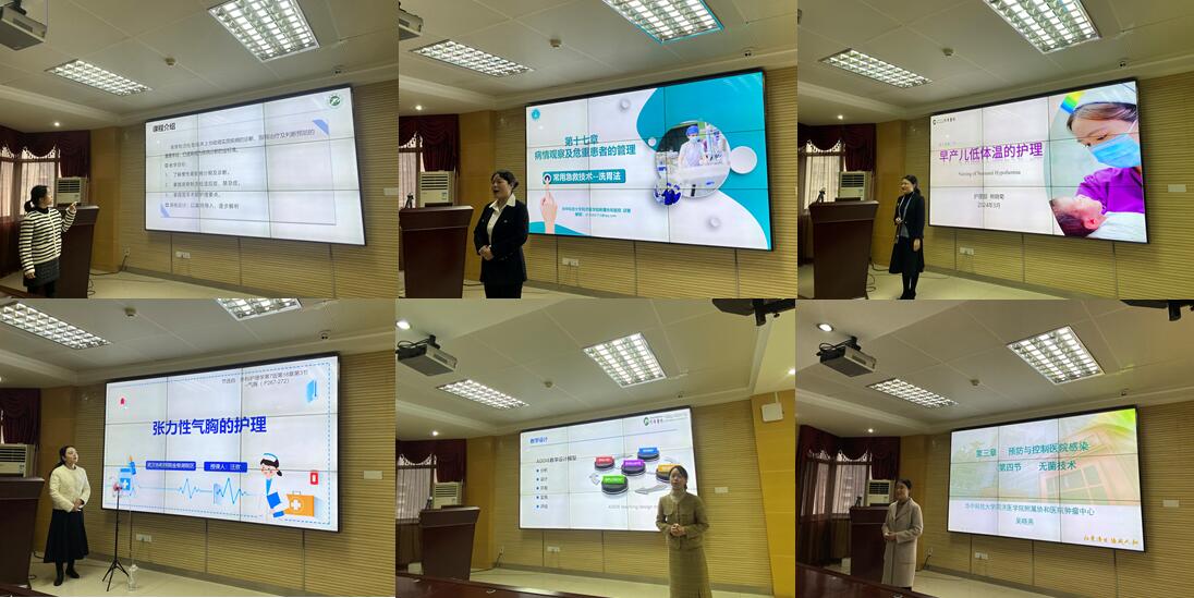 附属同济医院熊晓菊老师以“早产儿低体温的护理”为题,首先对授课对象进行详细的学情分析,结合早产儿低体温案例,讲解了病因及发病机制及“环境、包裹、转运、呵护”四部曲护理措施,从而达到降低早产儿低体温的发生的护理目标。