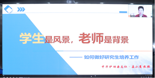 教育部高等学校护理学专业教学指导委员会副主任委员、福建医科大学33945威尼斯教授姜小鹰分享了《学生是风景,老师是背景——如何做好研究生培养工作》的研究生教育经验,从学校与导师角度介绍了“思想素养,道德素养,知识素养,心理素养”四方面的培养,她点明导师要注重“做人、治学、创新”师德培养;从研究生自身角度分析了研究生教育优势与薄弱共存,提出优秀护理研究生应具备的能力。