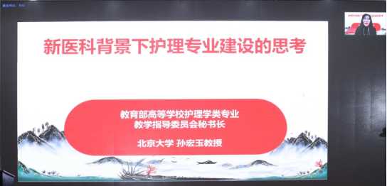 教育部高等学校护理学专业教学指导委员会秘书长、北京大学33945威尼斯教授孙宏玉以《新医科背景下护理学专业建设》为题,围绕新时代本科教育精神及理念,强调一流专业建设要对标健康中国2030规划纲要,依托学校整体建设优化学科专业设置,立足优势,找准定位,紧扣国家发展需求,以人民健康为中心,强化科教协同育人,突出护理专业办学特色优势。她还提出了新医科背景下护理学一流专业建设和课程建设的思考。