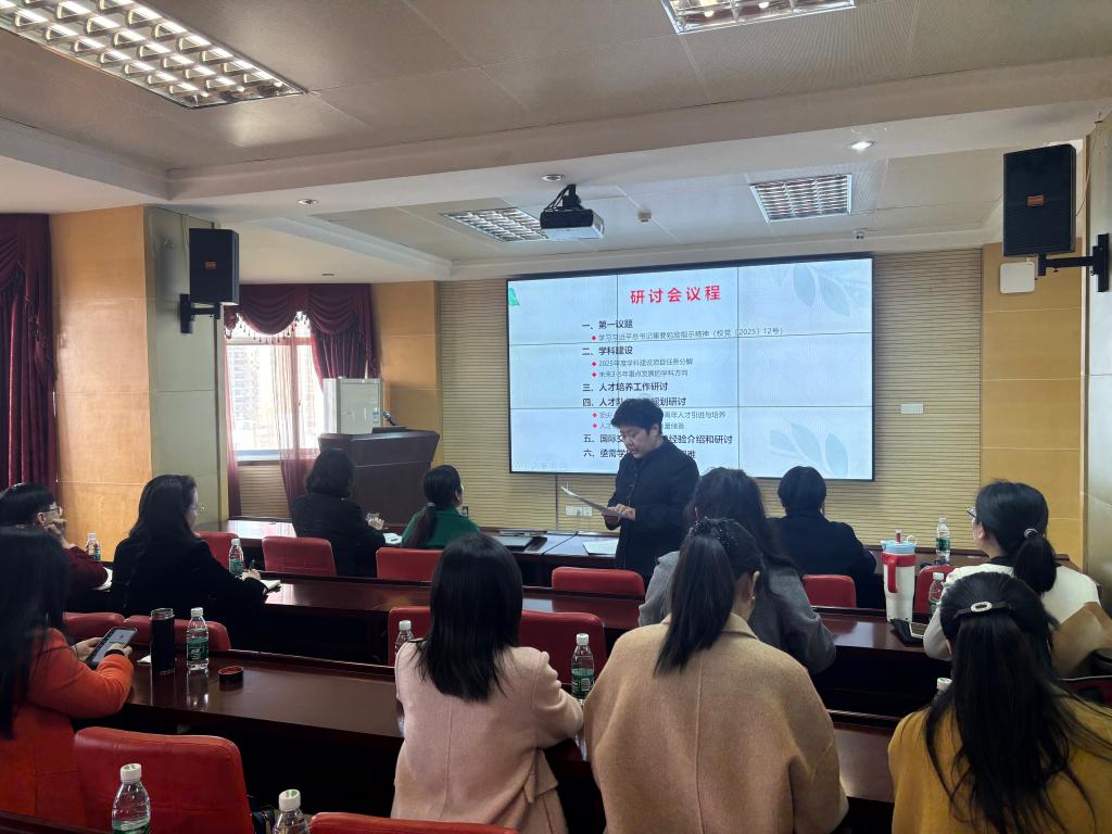 院外事秘书方佳琳传达了学校2025年国际合作工作推进会精神,介绍了学校国际交流工作先进院系的经验与做法,详细说明了学院本年度国际合作的工作重点,呼吁大家持续发力落实国际合作各项任务,加强高水平国际化人才培养,增强学院和学科的国际影响力。