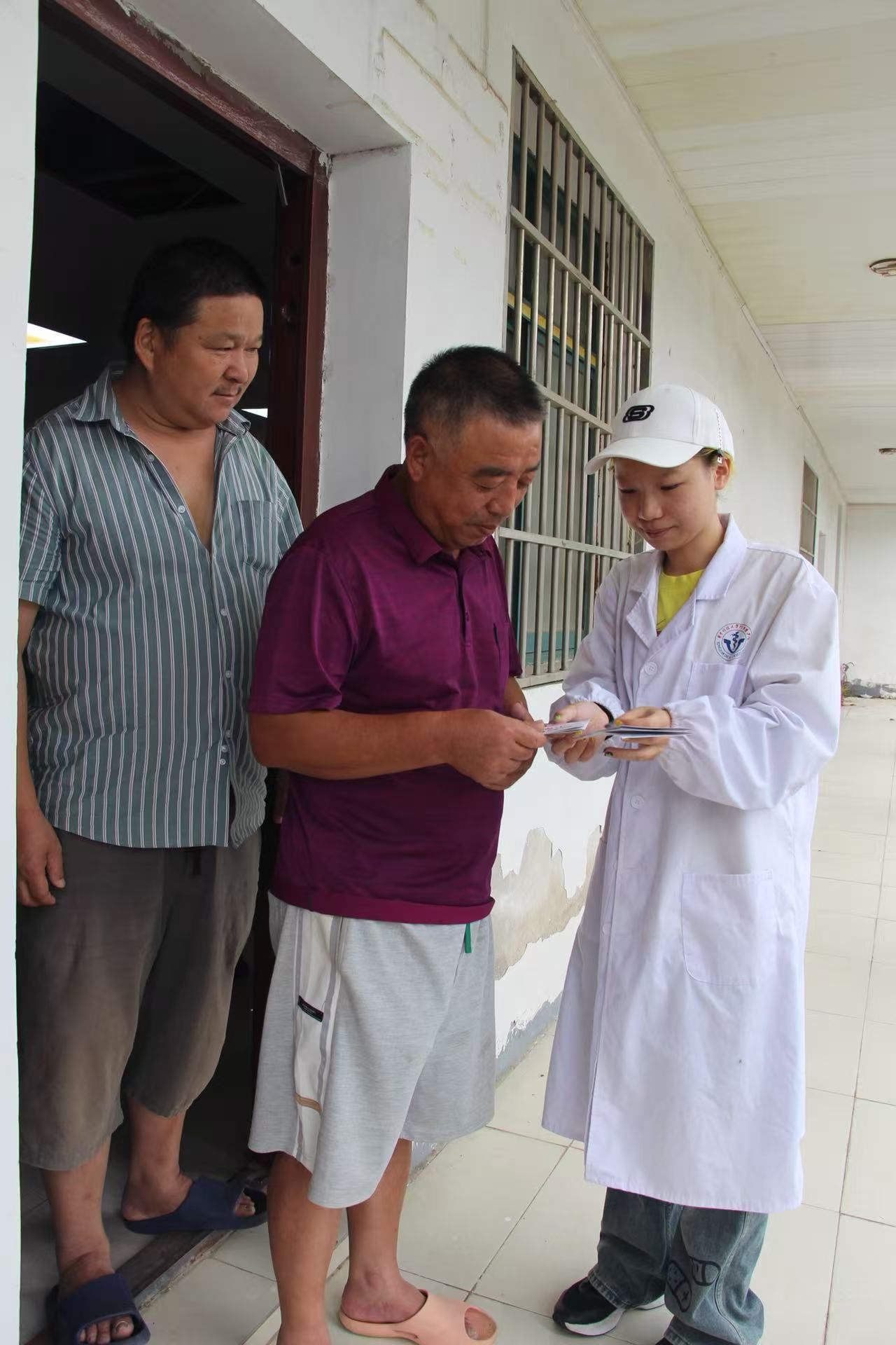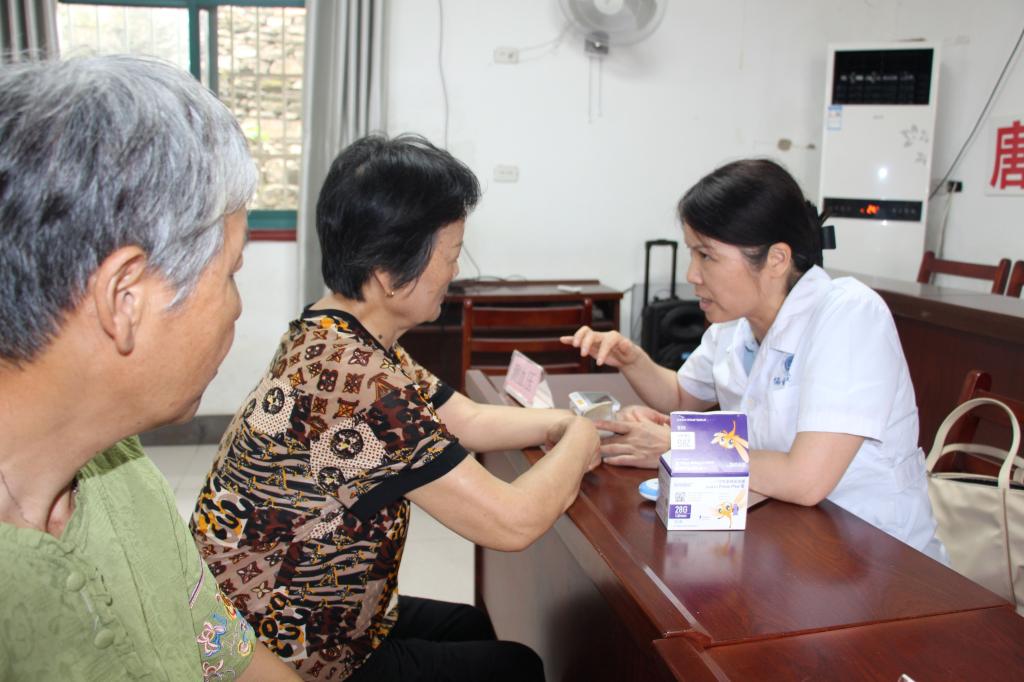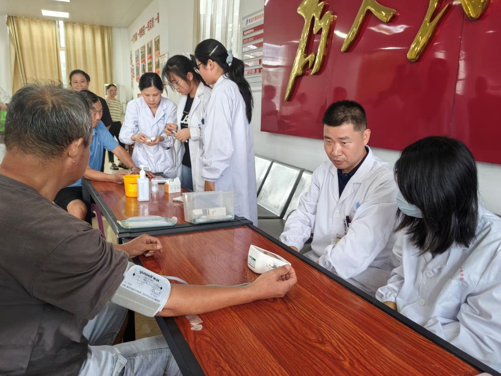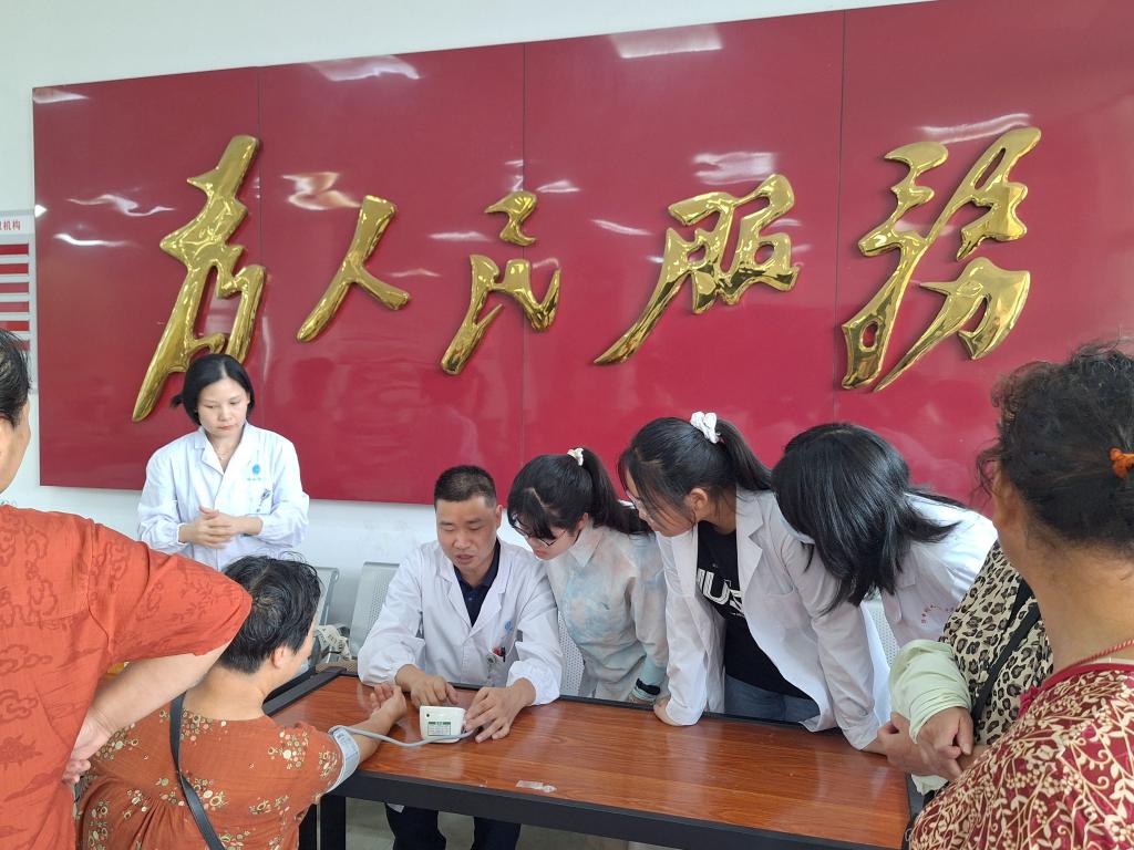 实践首日,王家河街道群益村与唐保社村的义诊点一设立便吸引众多乡亲。期间,队员发现一位已经吃完早餐两小时的阿姨血糖为9.1mmol/L,脱口而出的一句“您这血糖不正常啊”让这位阿姨瞬间紧张起来。指导老师见状,立即上前紧握她的双手,用平实的语言耐心解释异常值的多种可能性,强调单次检测的参考性并温和建议复查。“阿姨离开后,老师回头跟我们说,我们不能看到偏高的值就直接跟患者说一句‘不正常’,你的一句血糖不正常,她等下血压也可能因为紧张害怕直接飙到不正常。我们的职责,是给他们提出更多可以排除的可能性;传递信息,更要传递安心。”一位队员在实践日志中如是写道。