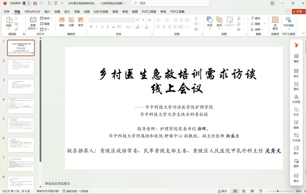 实践的目光也投向了乡村健康体系的基石——村医。24日,团队通过线上访谈,与多位黄陂区村医展开深度交流。随着访谈的深入,村医们放下一开始的客套,逐渐敞开心扉:“村民急救需求迫切,但我们(村医)培训机会少,知识更新难。”“农村里打车难,遇到突发情况很难解决,我觉得国家应该给每一个镇配备一台救护车,这样村民们遇到紧急情况时就很快有车开到村里去了……”