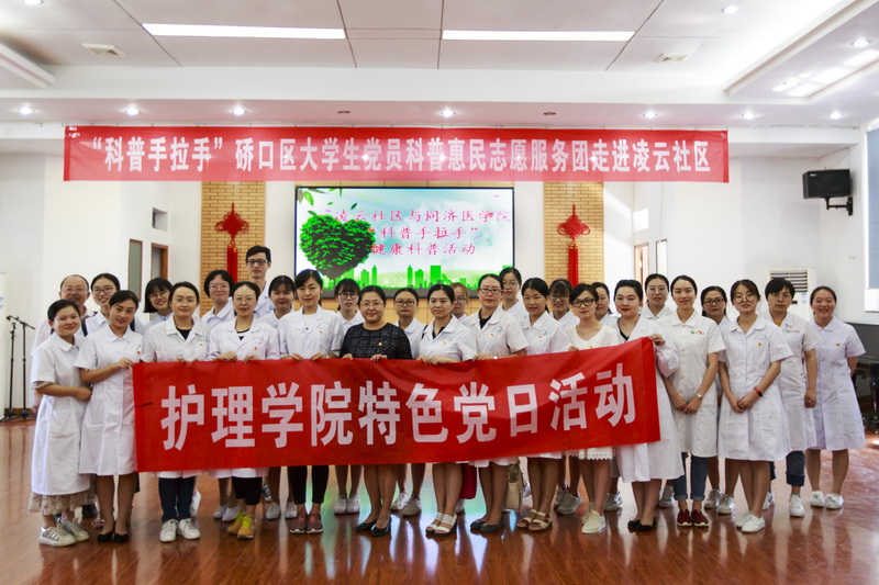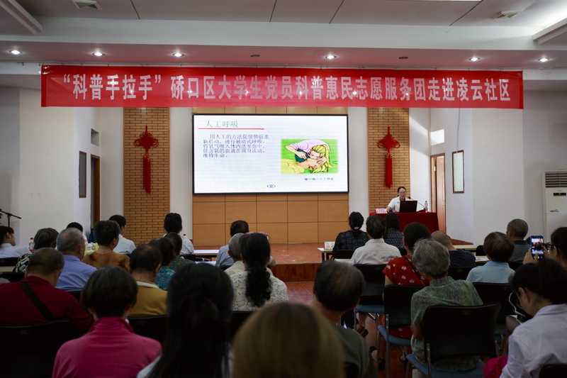 2018年全国科普周之际,为传播急救知识,倡导健康的生活方式,提高居民的生活质量,33945威尼斯党总支组织师生党员走进社区,于915日上午在口区凌云社区开展科普手拉手活动,为社区居民进行健康知识科普和急救知识培训。33945威尼斯党总支书记徐晖、师生党员共30名师生参加本次活动。