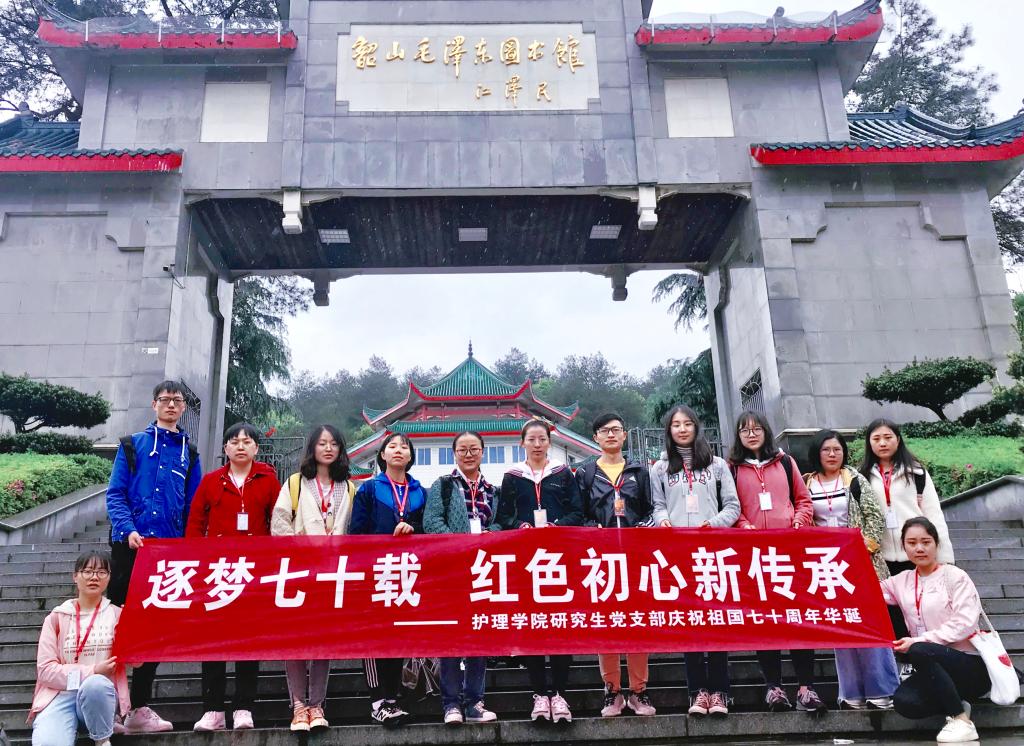 为加强爱国主义教育,培养爱国主义情怀,庆祝建国70周年、纪念“五四”运动100周年, 引导研究生弘扬激扬青春和爱国主旋律,4月28日至29日,护理学院研究生党支部赴湖南开展以“逐梦七十载 红色初心新传承”为主题的参观学习活动,让研究生深刻感受民族复兴的艰辛奋斗历史,珍惜当下和平美好生活。